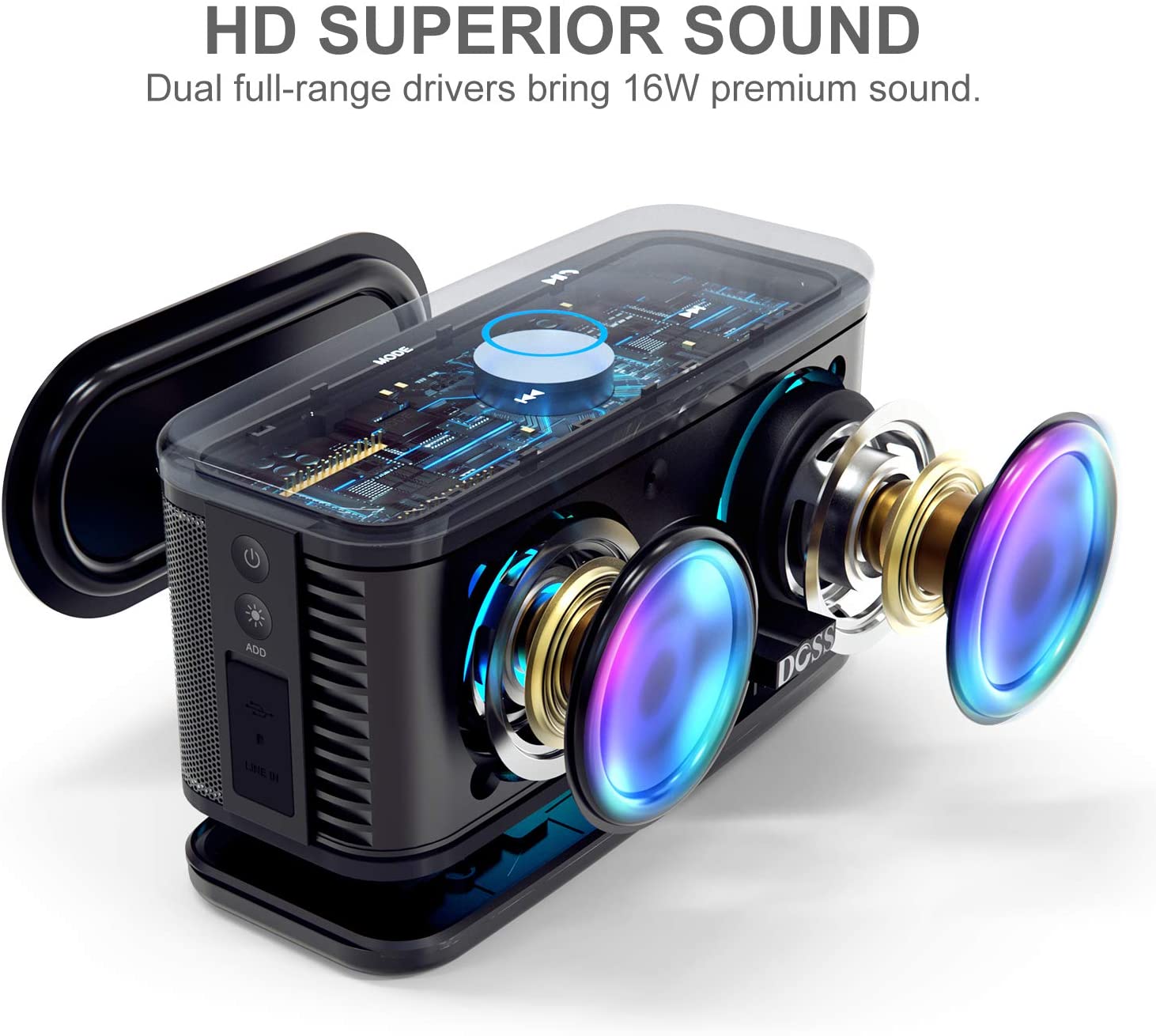 Bluetooth Speakers, DOSS SoundBox Plus Portable Wireless Bluetooth Speaker with 16W HD Sound and Deep Bass, Wireless Stereo Pairing, 20H Playtime, Wireless Speaker for Home, Outdoor, Travel - Black